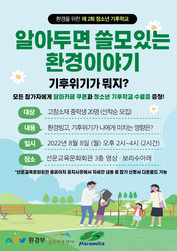제 2회 청소년 기후학교 '알아두면 쓸모있는 환경이야기' 프로그램 개설 안내