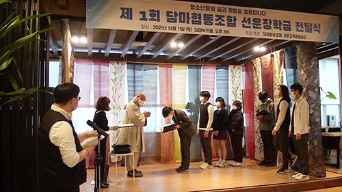 선운장학금은 고창 선운교육문화회관의 운영법인인 '담마협동조합'이 북카페 '담마'의 수익금 일부를 1년간 적립해 모았습니다.